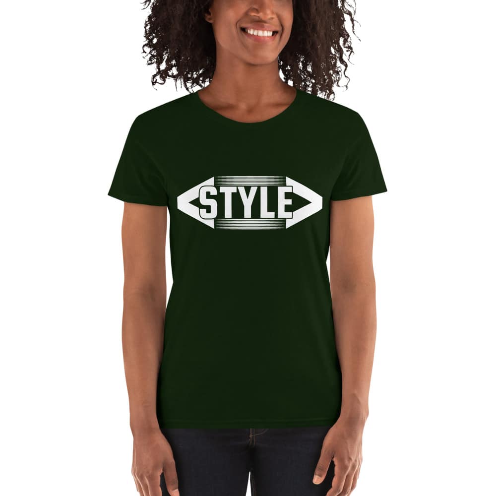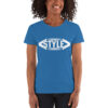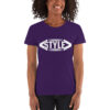 A heavy cotton, classic fit ladies scoop neck t-shirt.