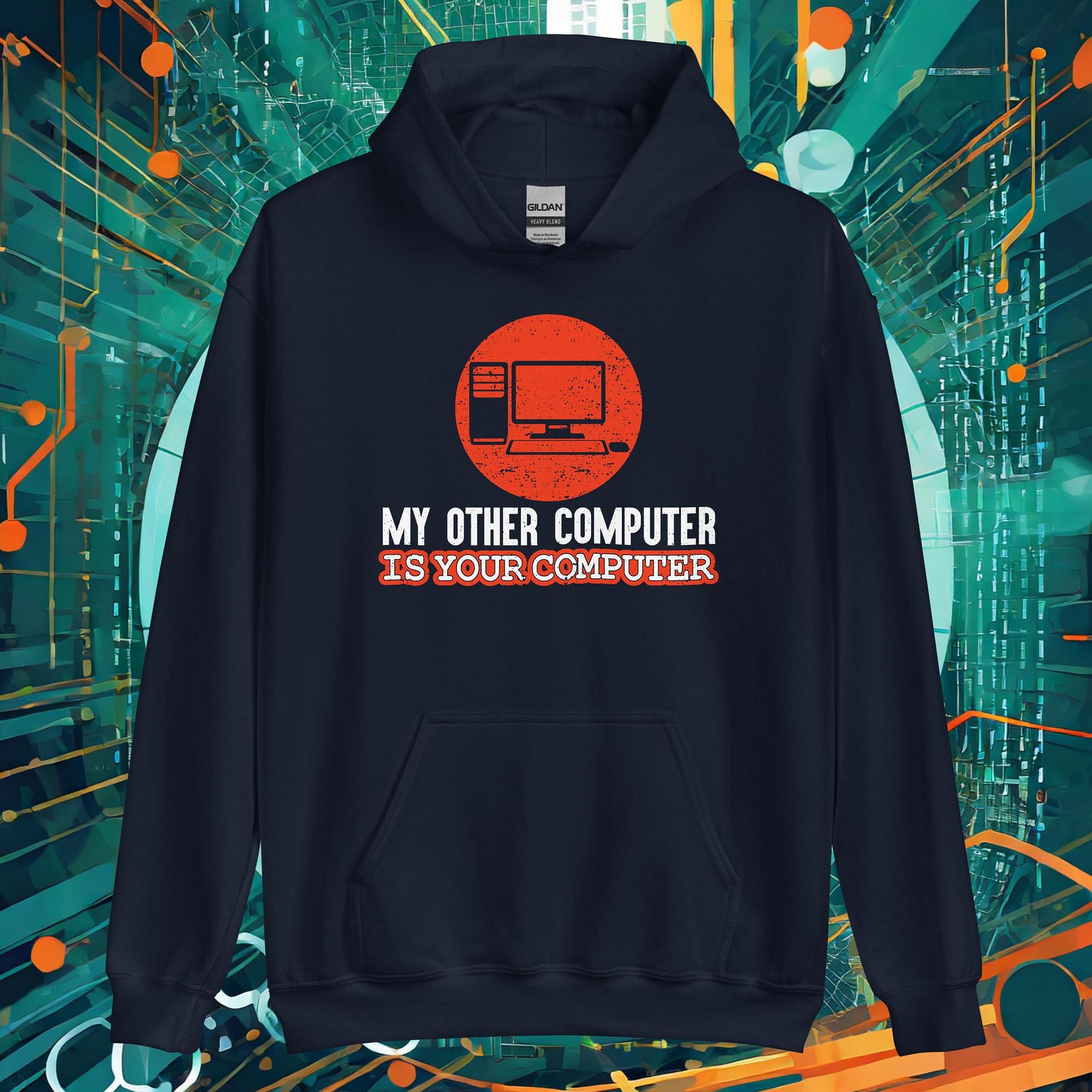 Wear it with pride, and let everyone know that your other computer is, indeed, their computer… when you’re in the mood for a little cybersecurity fun! Stay warm, stay secure, and stay hilarious with our “My other computer is your computer” hoodie.